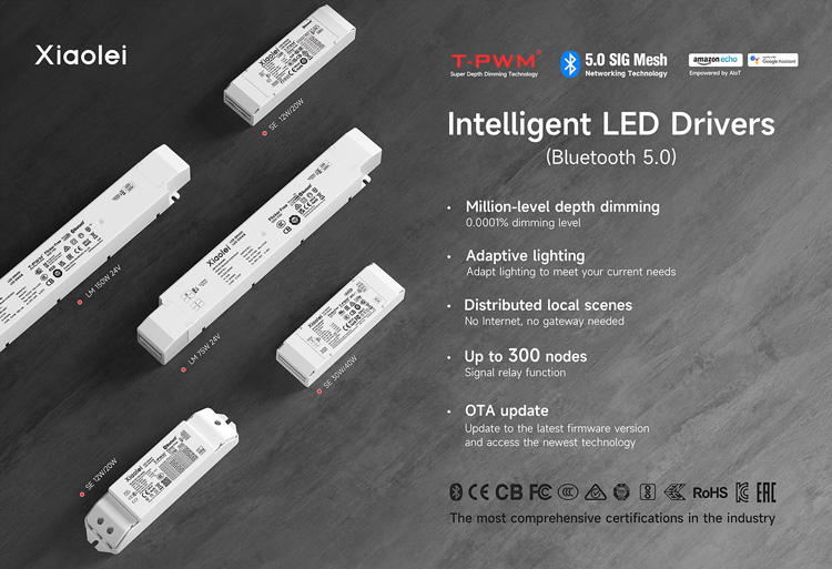 Xiaolei Bluetooth constant current/constant voltage color temperature intelligent power supply is applied in this solution, demonstrating excellent performance. It is equipped with T-PWM® million-level ultra-deep dimming technology, with no stroboscopic effect throughout, reaching the IEEE 1789 high-frequency exemption level, thus creating a true star hotel lighting environment.