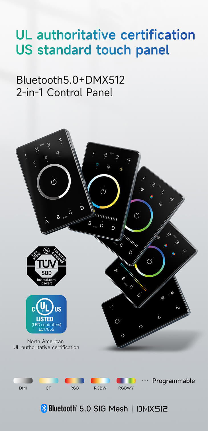Supports Dimming / Color Temperature / RGB/RGBW / RGBWY / Programming , Four Scene Keys+Intelligent Touch Ring Enable.Quick Access to Preset Lighting Modes.Allowing Rapid Smart Control of Brightness Color Temperature, and Color LTECH Interactive Functions Can Be Configured via the L-Home App.