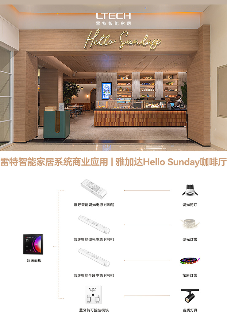 店内通过雷特超级智能面板+雷特蓝牙5.0智能电源