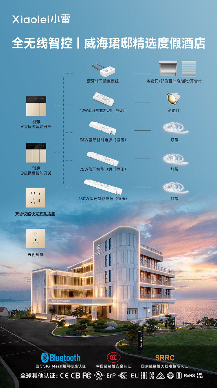 当海滨风情遇见智能科技,当艺术空间邂逅人性照明,威海珺邸精选度假酒店与小雷智能家居的携手,不仅是高端酒店智能化的典范,更是对 “量身定制” 旅居体验的完美诠释。在这里,每一次光影切换都是对生活品质的致敬,每一次智能交互都是对舒适体验的升级。