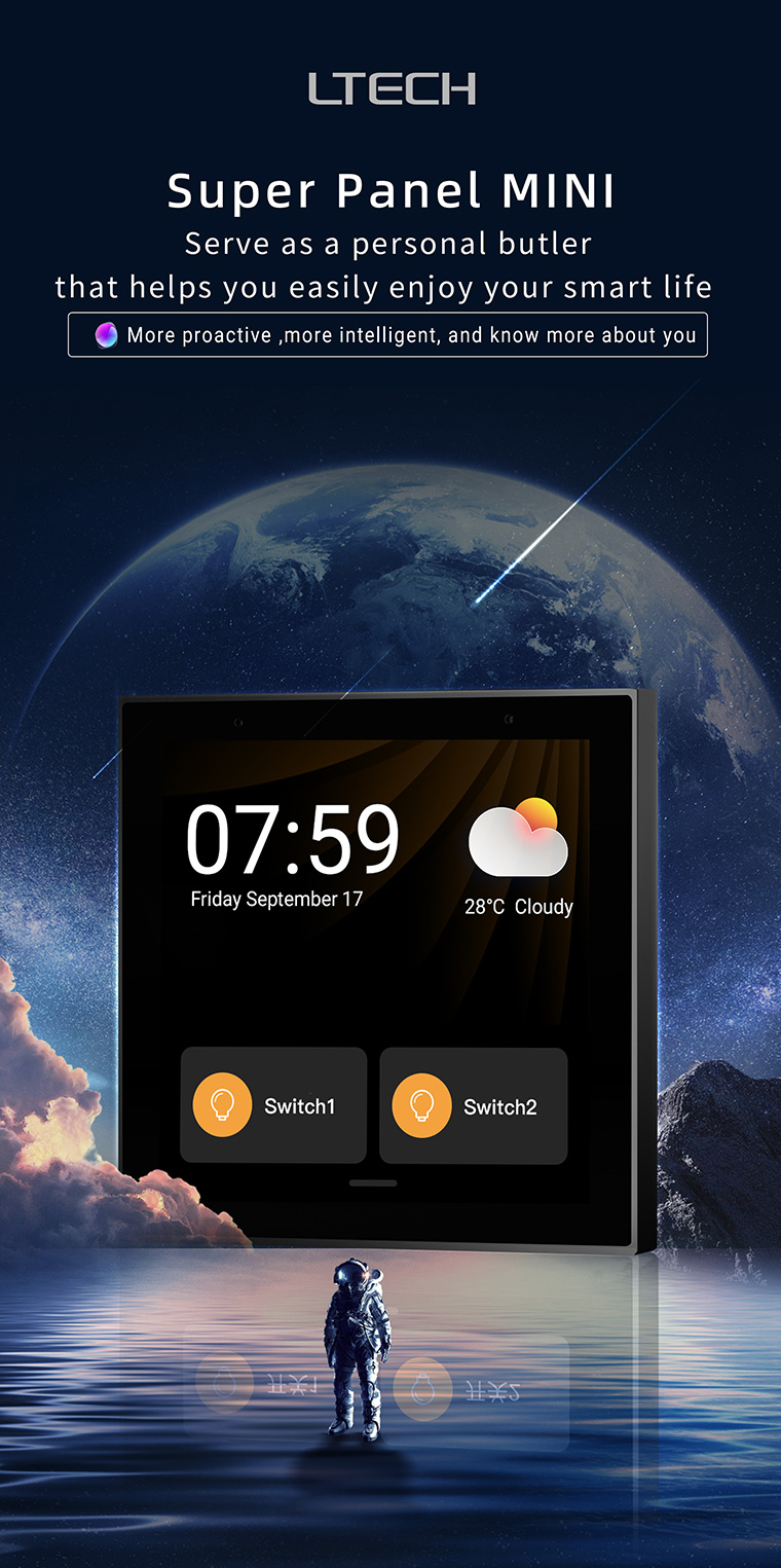 Super Panel 4S is used in this scheme More with a high level of appearance, core product strength Realize APP/ touch/voice control multiple interaction With its own gateway, flexible layout of intelligent control scheme