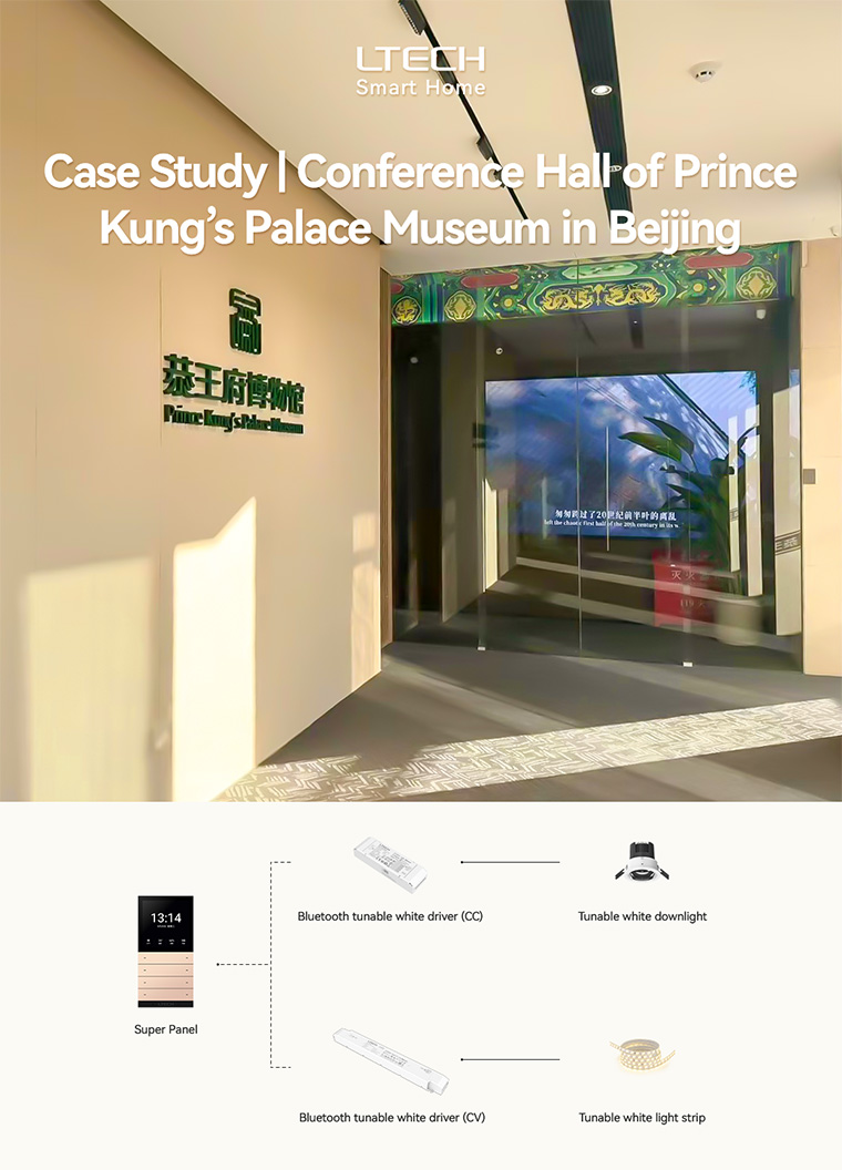 Prince Kung’s Palace Museum is not only a national first-class museum, but also a national key cultural relics protection unit. The museum conference hall also serves as an important venue for discussing cultural relic protection and cultural industry work. For museum workers, lighting environment is crucial. In the conference hall area, LTECH smart home system is used to customize the lighting needs for demonstrations, routine work, meeting, discussions and other scenes, creating high-quality lighting for the museum's working environment.